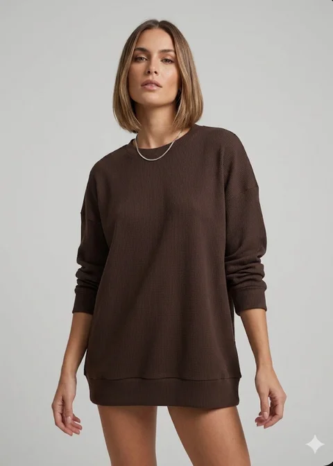 Buzo de wafle manga larga con tajo al costado.