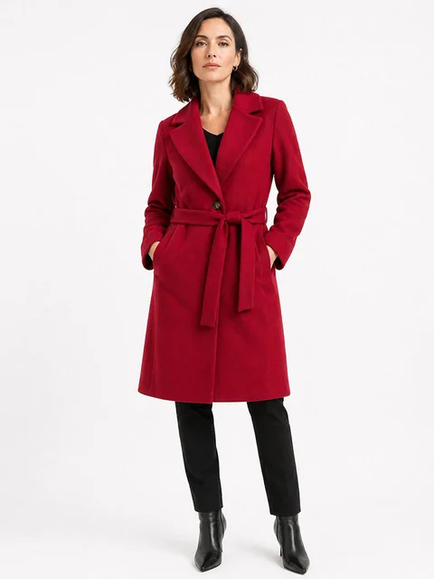 Tapado de paño elastizado con boton marmolado y lazo de igual tela. Bolsillos laterales. Hermosa paleta de color. Calce clásico, largo debajo de la rodilla.